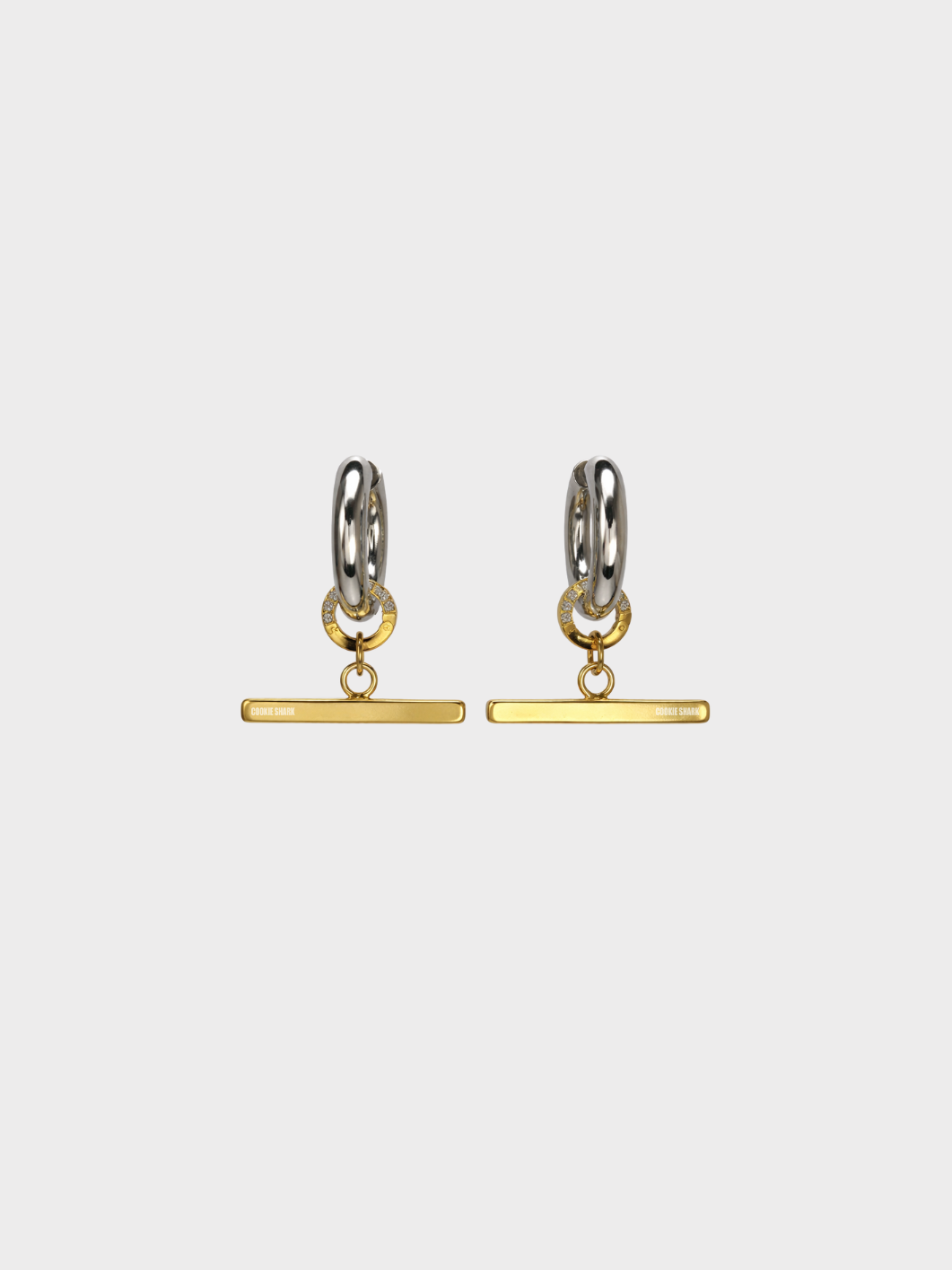 Composition : Créole en acier inoxydable galvanisé, anneau en acier inoxydable recouvert d'or 24K serti de zircons et barre en laiton doré à l'or 24K.